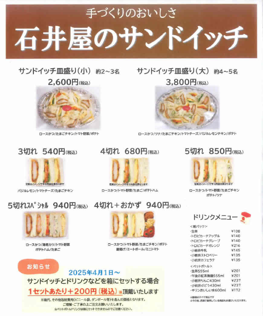 石井屋のサンドイッチ詳細はこちらから(PDF:300KB)